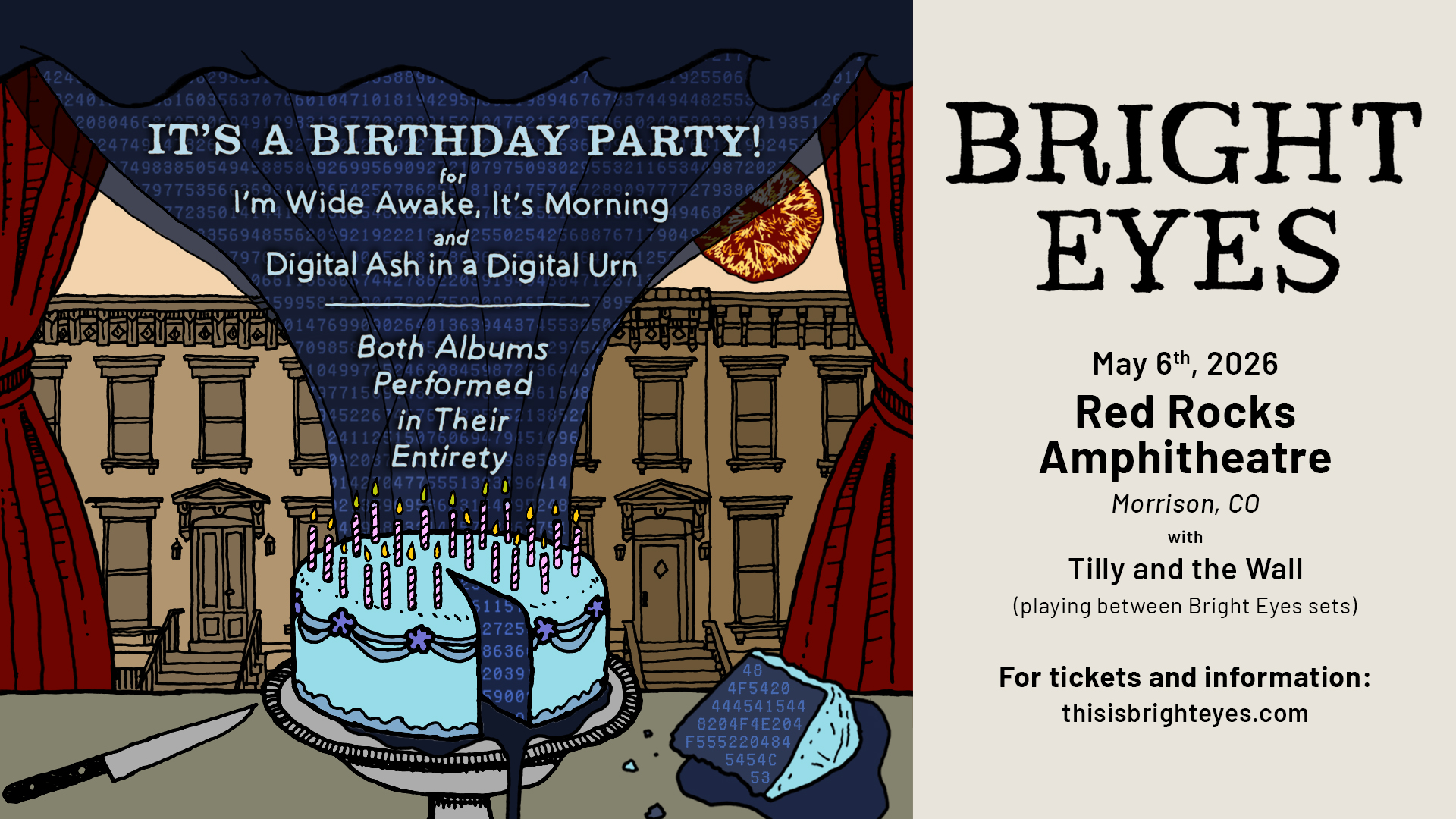 Bright Eyes live at Red Rocks Amphitheatre — May 6, 2026. Book hotels, shuttles, and amenities through Colorado Music Travel.