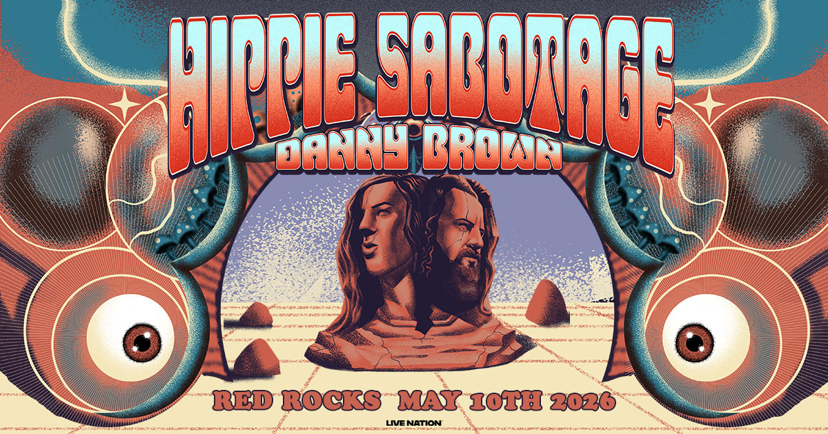 Hippie Sabotage live at Red Rocks Amphitheatre — May 10, 2026. Book hotels, shuttles, and amenities through Colorado Music Travel.