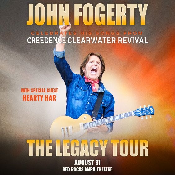 John Fogerty live at Red Rocks Amphitheatre — August 31, 2026. Book hotels, shuttles, and amenities through Colorado Music Travel.