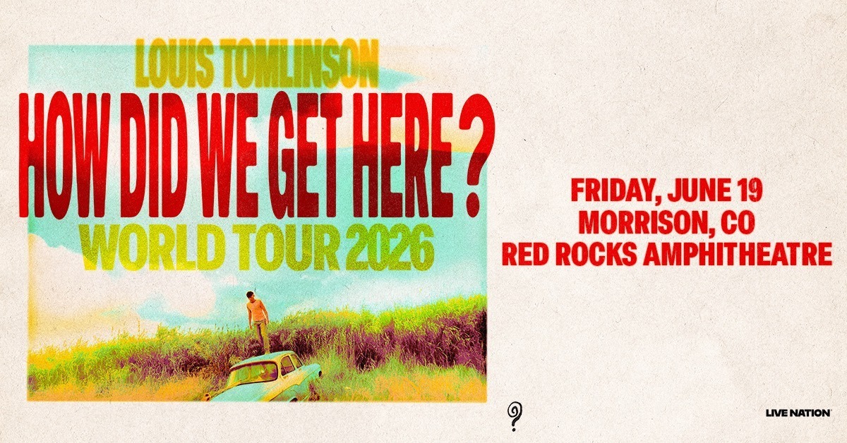 Louis Tomlinson live at Red Rocks Amphitheatre — June 19, 2026. Book hotels, shuttles, and amenities through Colorado Music Travel.